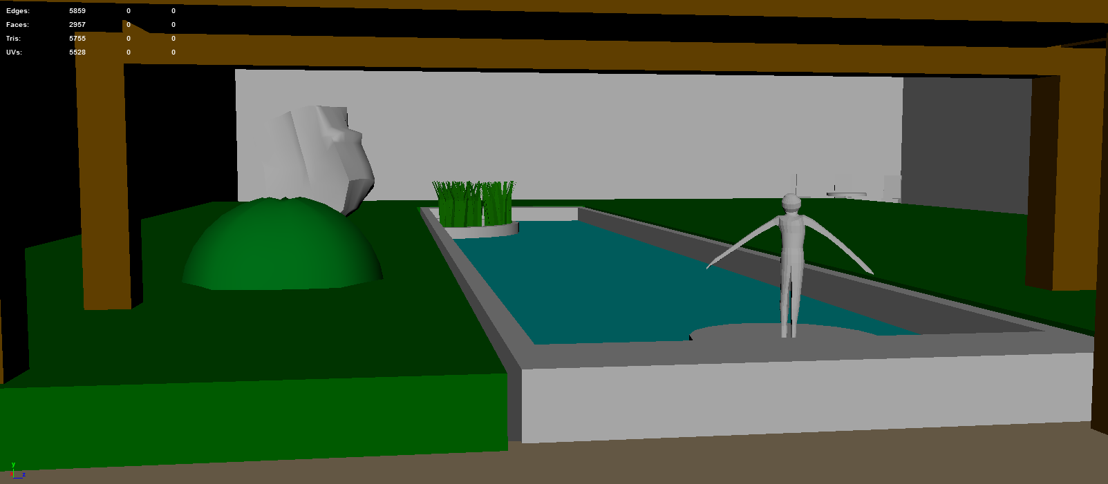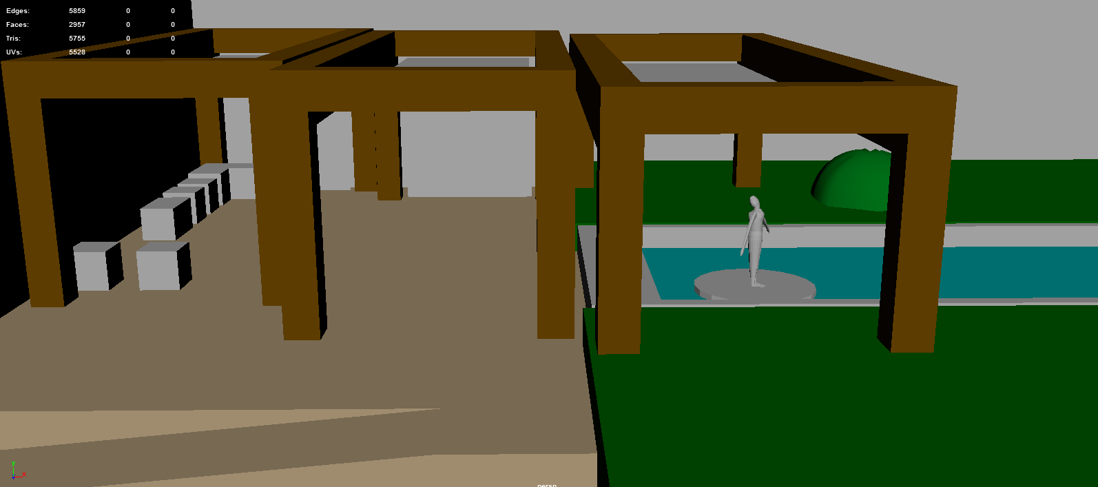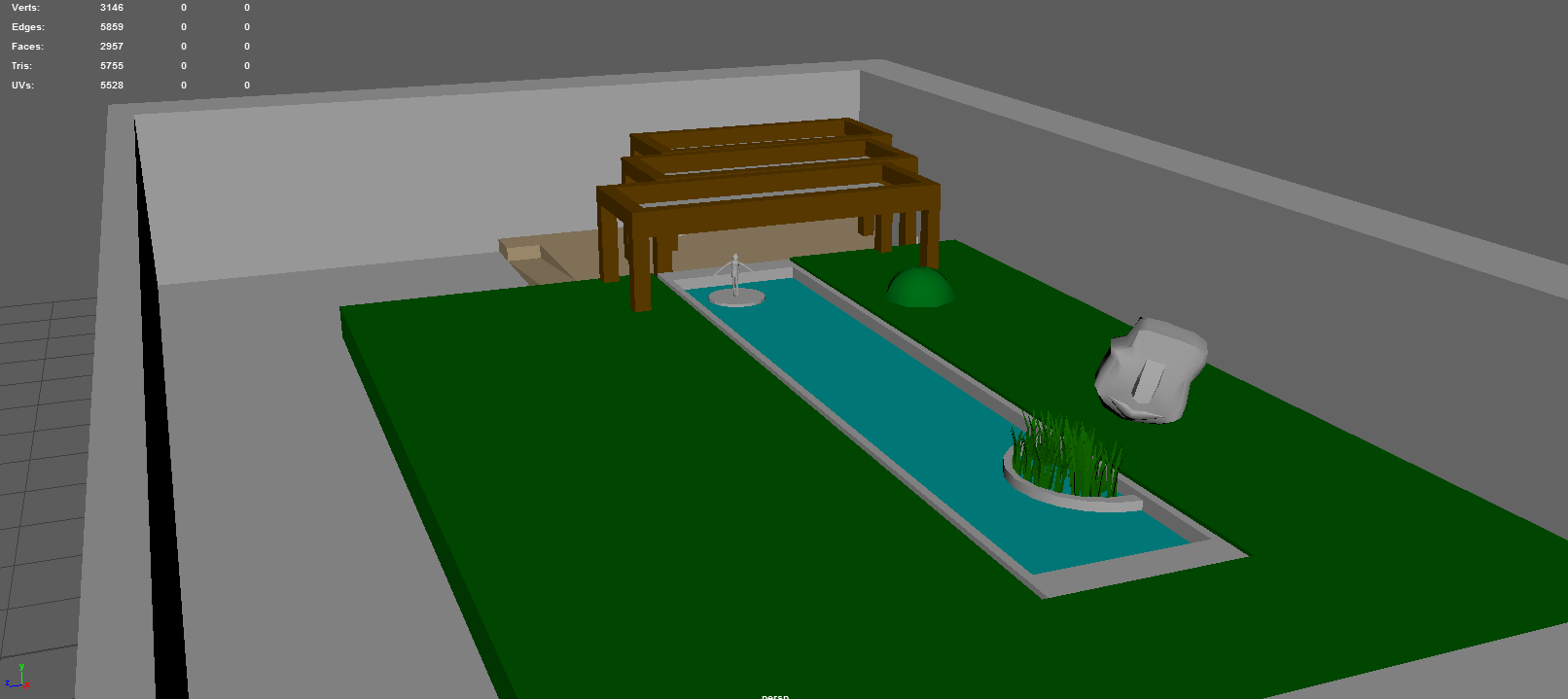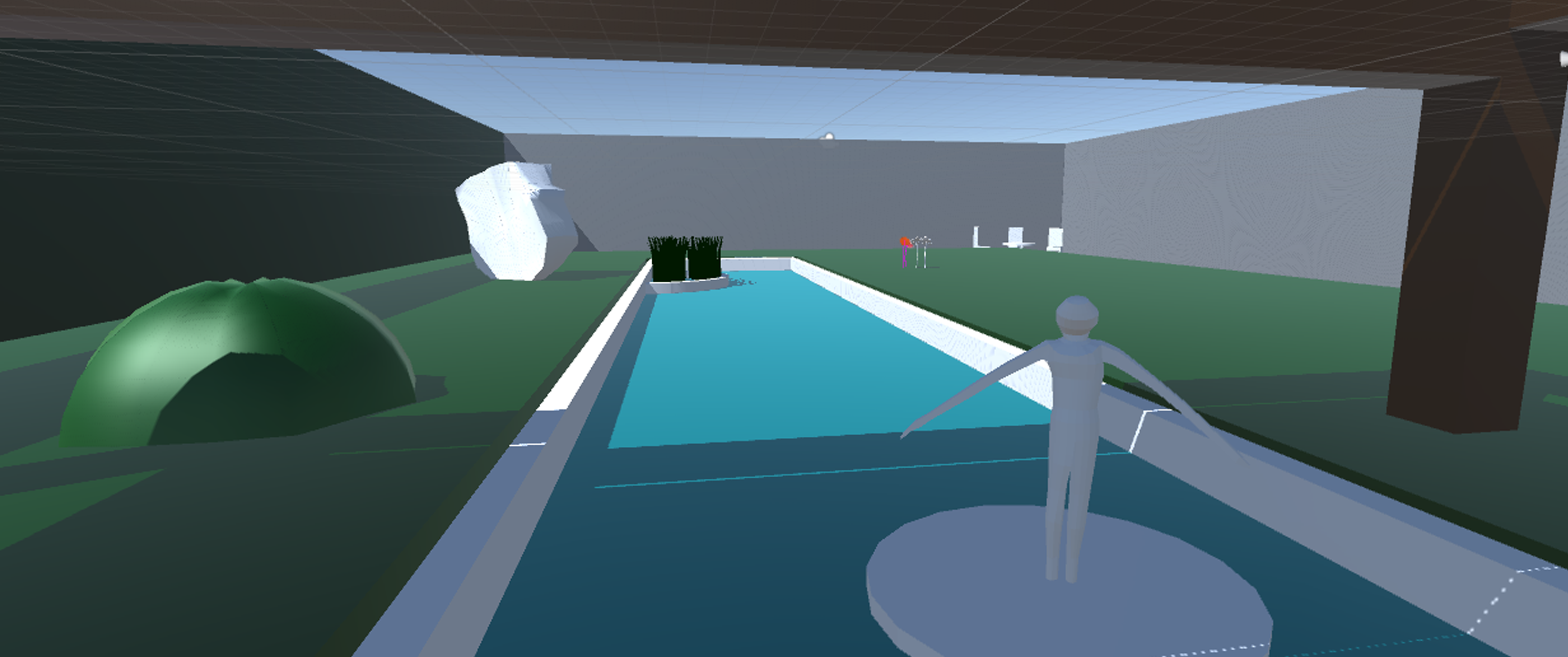 Whiteboxe of Garden in Maya and Unity